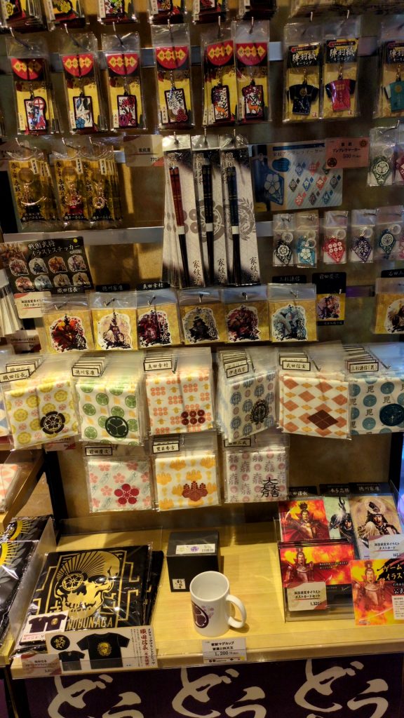 Because of this, there were many souvenirs related to the battle and Japanese warlords, such as Tokugawa Ieyasu and Toyotomi Hideyoshi. They even sold Japanese matchlock guns that were used in the battle (of course, not real ones). I found some japanese tea cups that were really cute and perfect as souvenirs, and there were also miniature katana and kabuto keychains like the ones shown below.