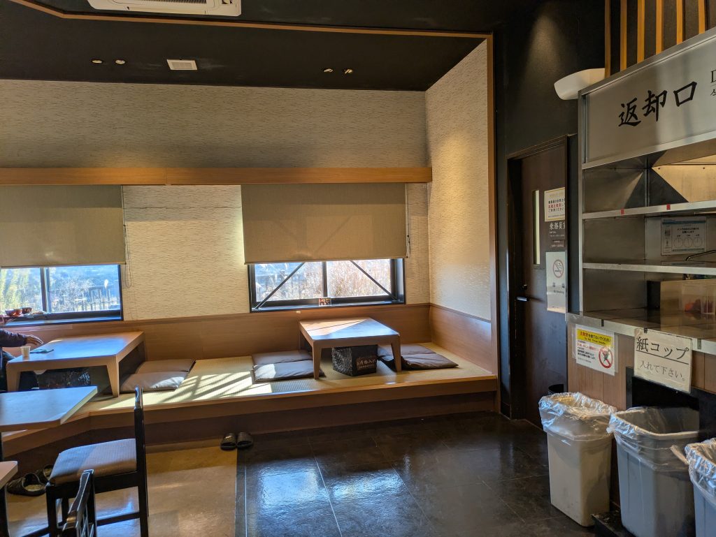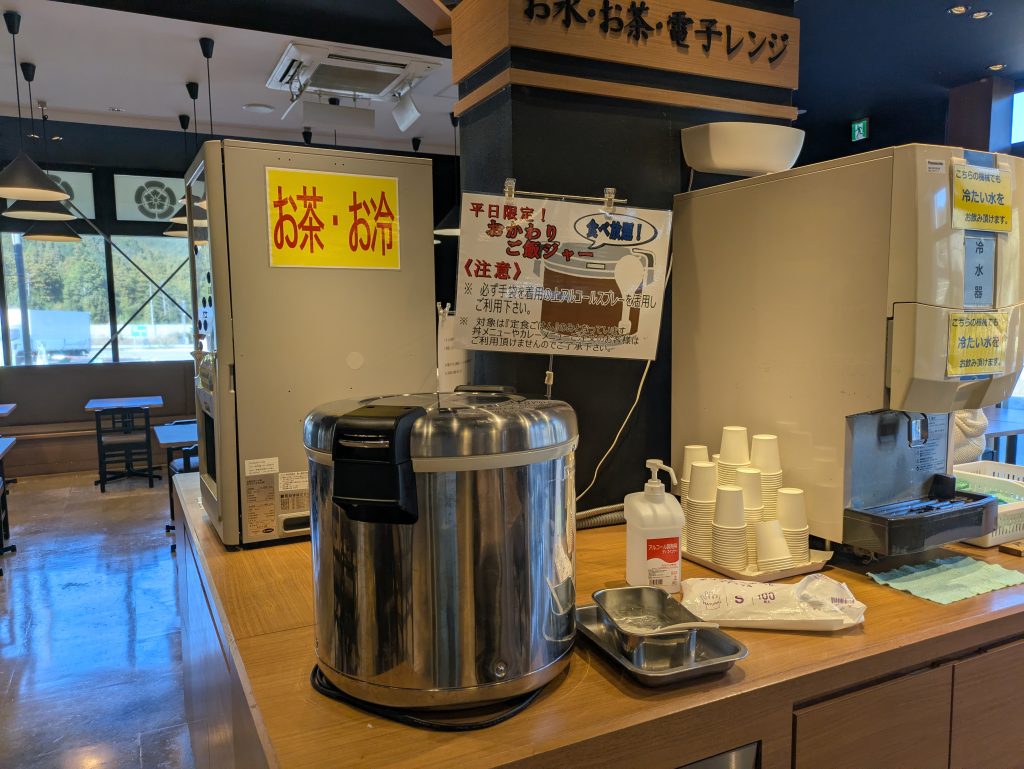 At the restaurant in the parking area, there weren’t many dishes related to the battle or warlords. However, they had a small tatami seating area which is unusual for service or parking areas. this isn’t directly related, but they also offered free rice refills, which is quite rare in today’s service or parking areas.